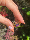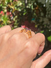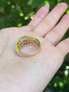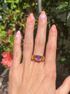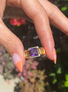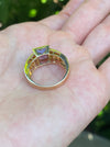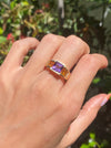 This is a vintage 14k amethyst and citrine ring. It has the cutest cut out heart design. It is approx 4.2g . It has 1.05 tcw citrine and 1.73 tcw amethyst. It is size 7.25 and resizable