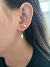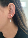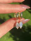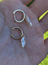 This is a 14k 2.2 carat lab marquise diamond earrings. It is approx VS1 E color . The huggie measure approx 12.2mm top To bottom, 12.5mm front to back (diameter) and 2mm wide. They hang an additional 13mm in length with the diamond.