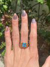 18k blue topaz, peridot, citrine amethyst ring size 6.5