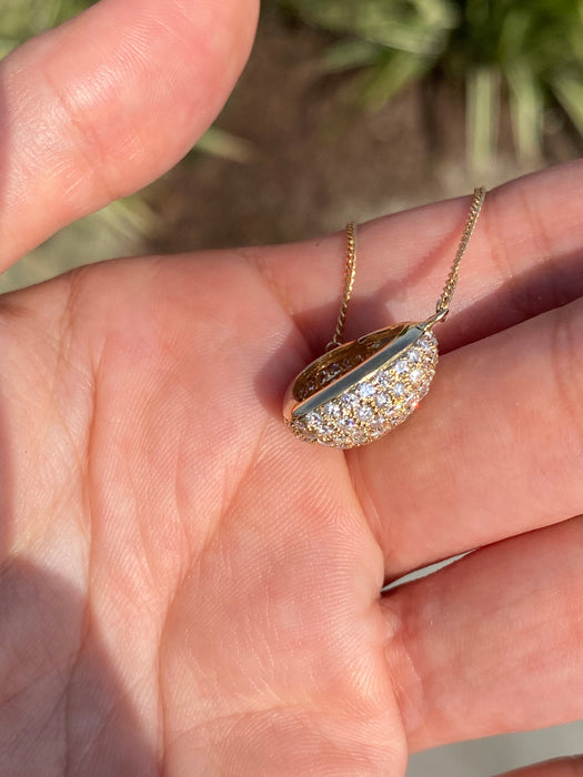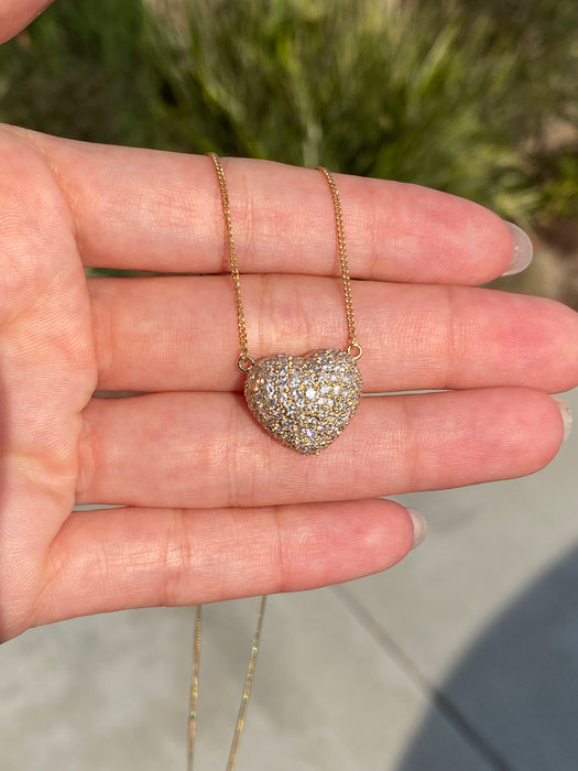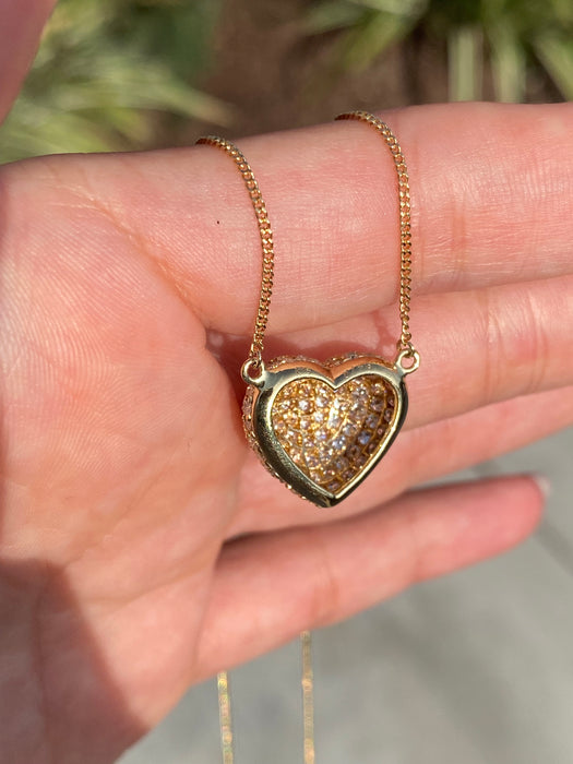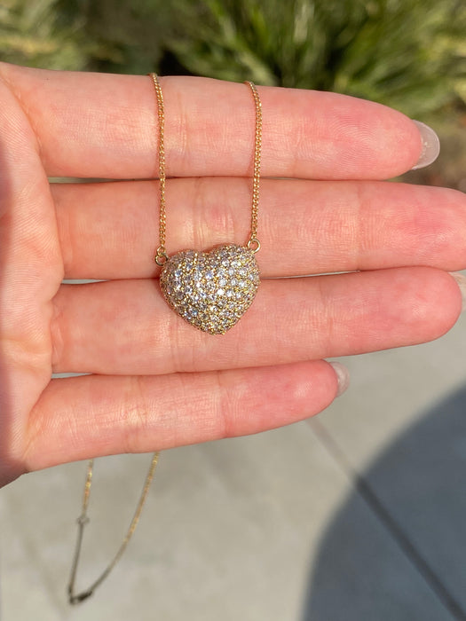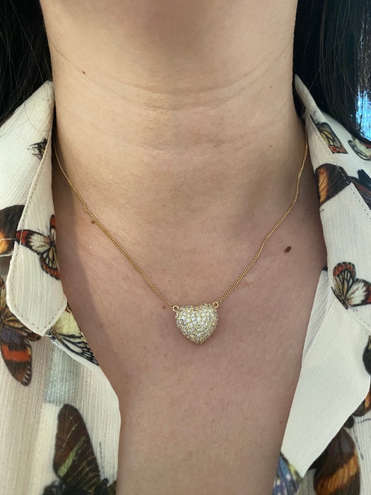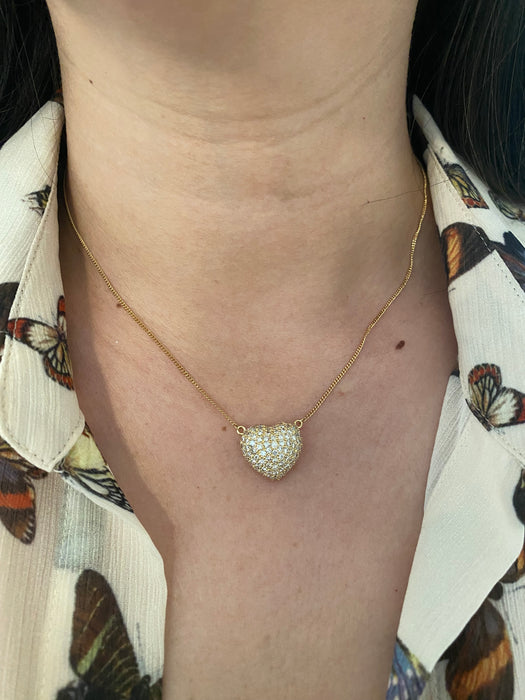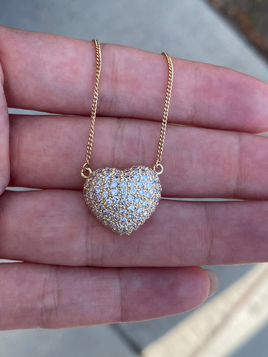 This is a vintage 18k curb chain with 18k diamond heart pendant. It is 15” or 16.5”. It has 1.5 carats of diamonds and is approx 4.4g