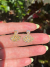 This is a set of vintage 18k fan diamond earrings. They have 1 carat of diamonds. They come with 18k silicone push backings. They are approx 16mm in length and 1.7g