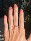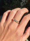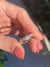 This is a vintage 18k yellow gold ring with  platinum set diamonds. It has 0.52 tcw diamonds. It is approx 4.3g and approx 4.8mm wide