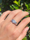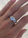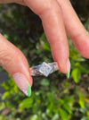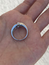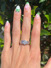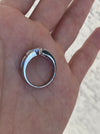 This is a vintage 18k white gold diamond ring. It has princess cut and baguette diamonds. It is size 6.75 and resizable.It is approx 5.5g and approx 0.6 tcw diamonds