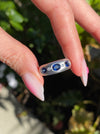 Vintage Platinum 900 Blue Sapphire & Diamond Flush Set Ring