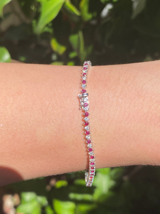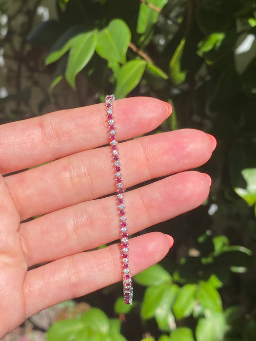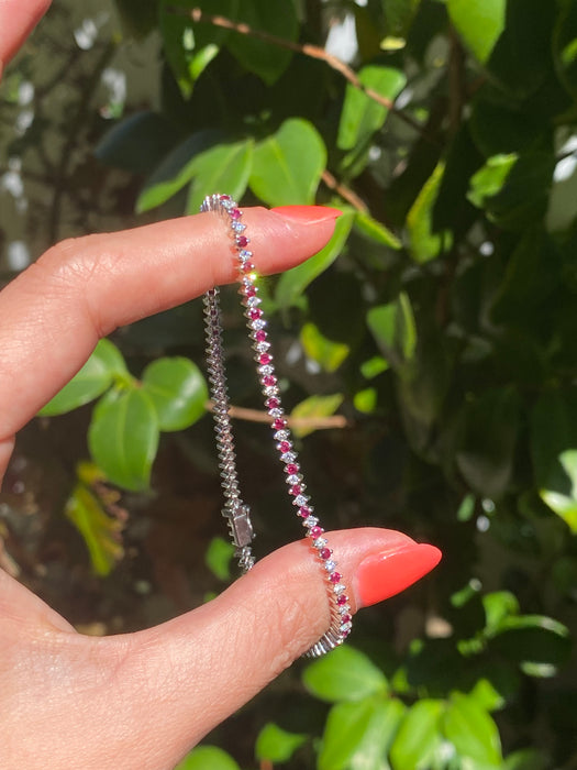 Platinum 900 diamond ruby tennis bracelet 7.25”